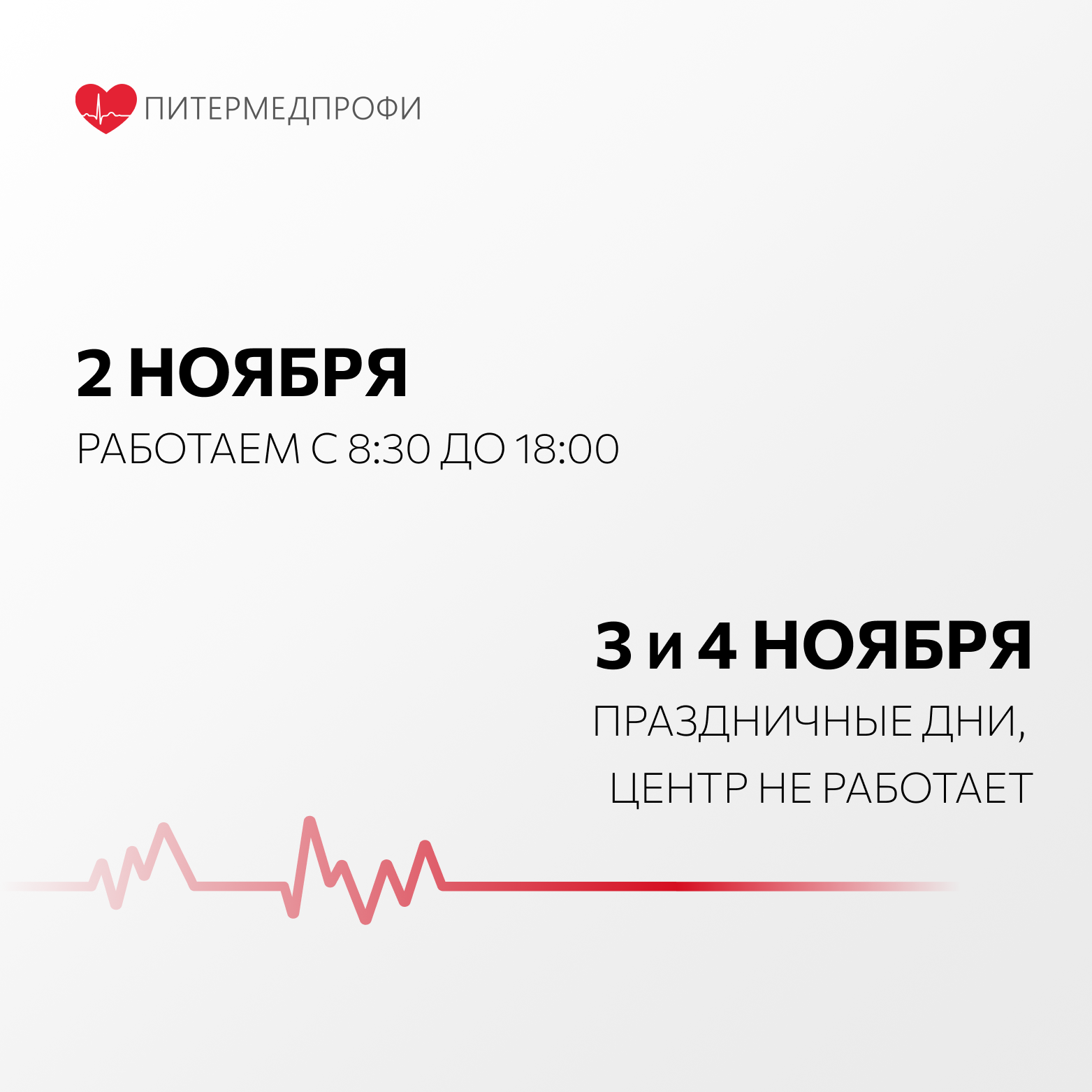 Обращаем ваше внимание на график работы «Питермедпрофи» в предстоящие праздничные выходные: